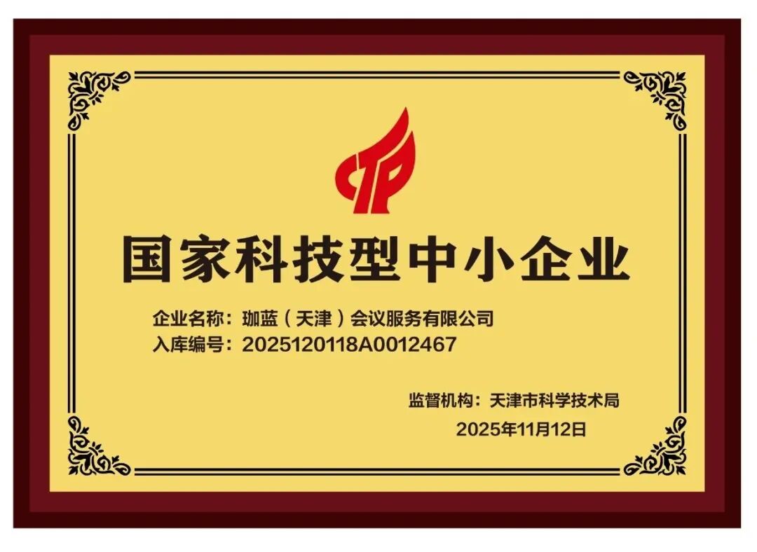 近日,经国家相关部门评审,珈蓝(天津)会议服务有限公司凭借其在技术服务、创新研发等方面的突出表现,成功入选国家科技型中小企业库,荣获“国家科技型中小企业”称号(入库编号:2025120118A0012467)。这一权威认定,不仅标志着珈蓝会议服务的技术创新实力与发展潜力获得了国家层面的认可,也彰显了其作为现代服务业企业向“科技驱动”转型的卓越成果。